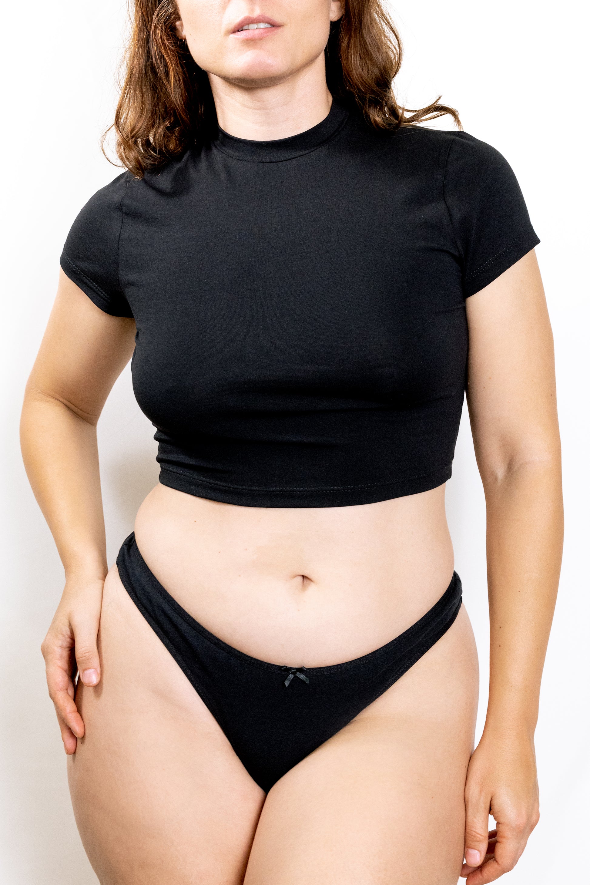 Crop top made of breathable Organic Pima Cotton with subtle stretch for extra freshness and confort. A basic that will elevate any look.